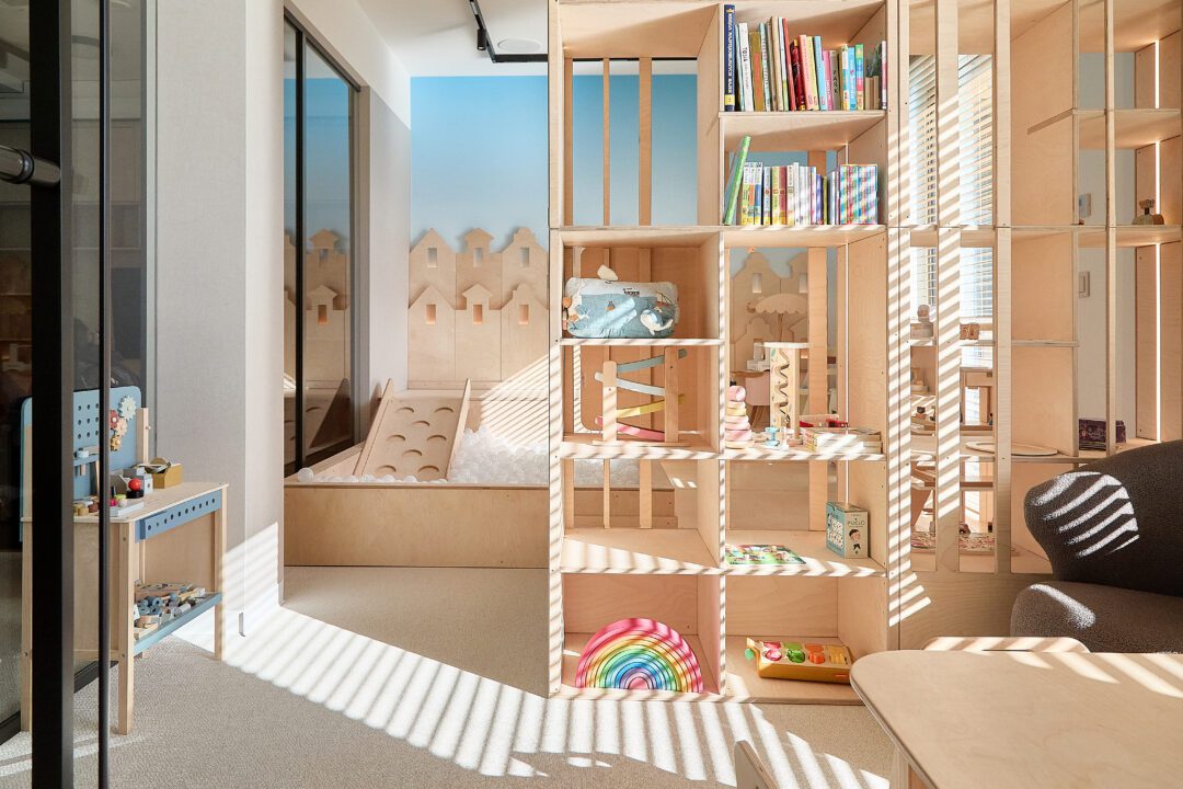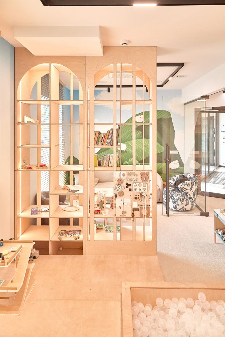 Z kolei maluszki mogą skorzystać z platform na ruchome zabawki, mini zjeżdżalni oraz basenu z piłeczkami. A kiedy wszyscy będą potrzebowali chwili odpoczynku – mogą sięgnąć po książeczkę na dedykowanym regale i skorzystać z drewnianych mebli.
